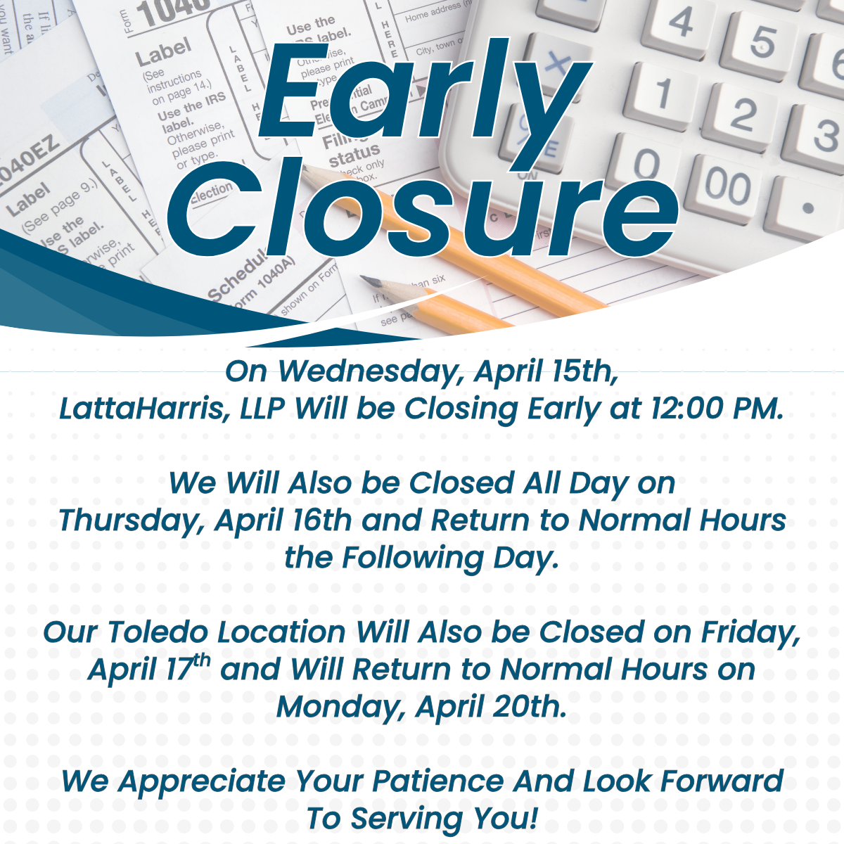 Contact your local LattaHarris office today to learn if you qualify before the July 6th Deadline